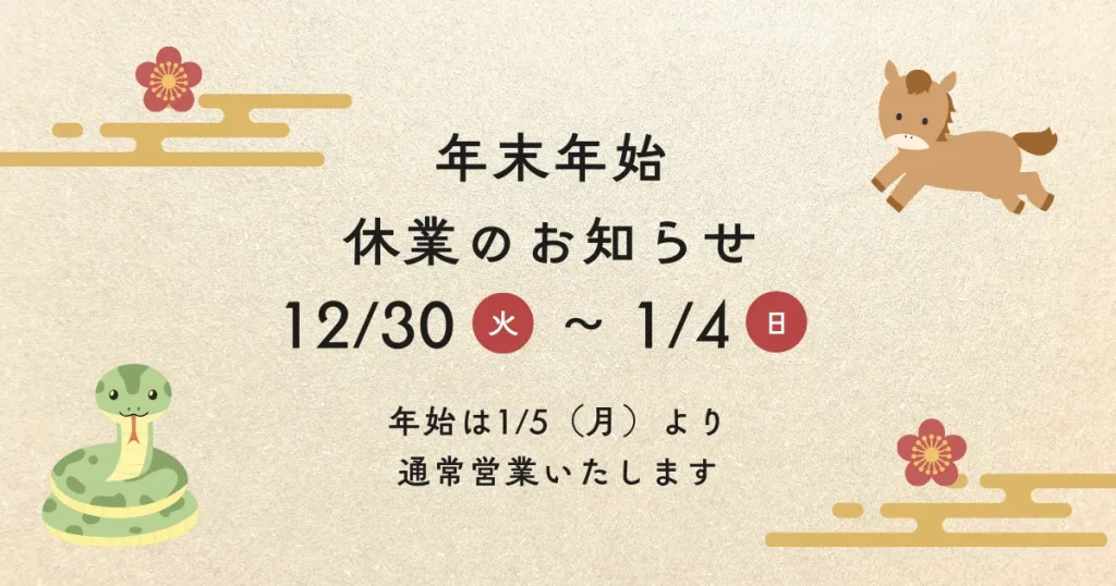 ※新年は2026年1月5日(月)より、平常通り営業させて頂きます。
