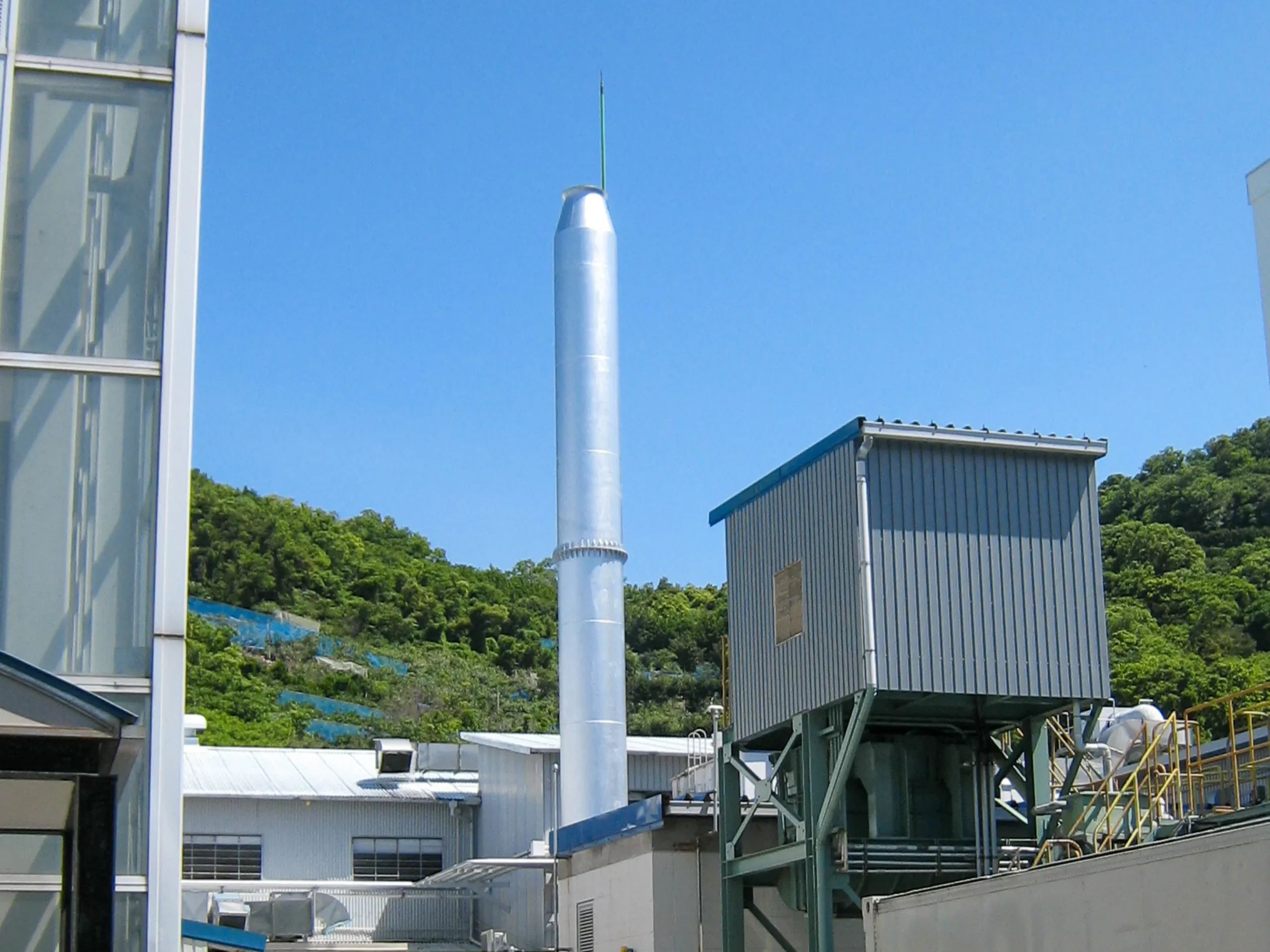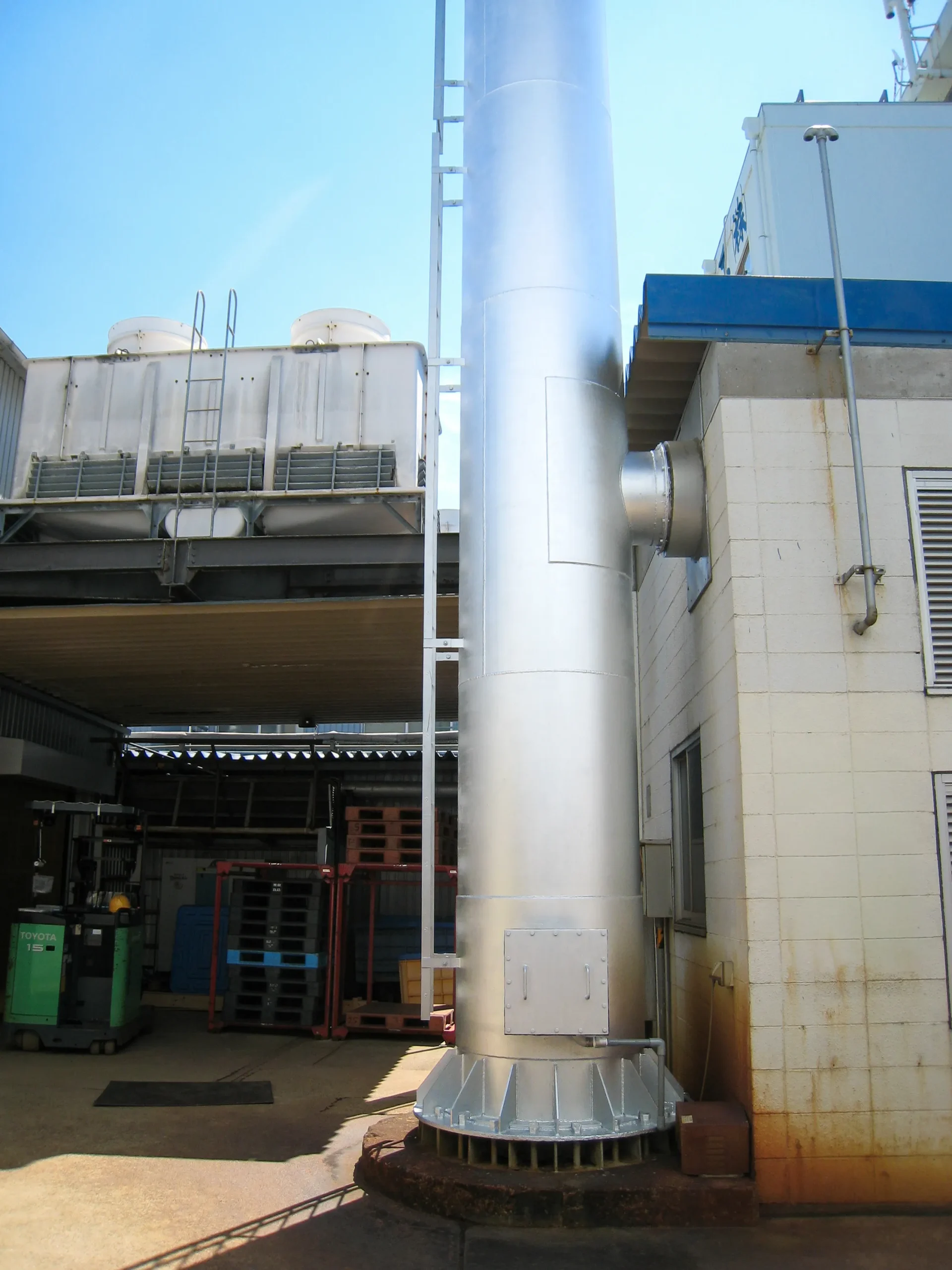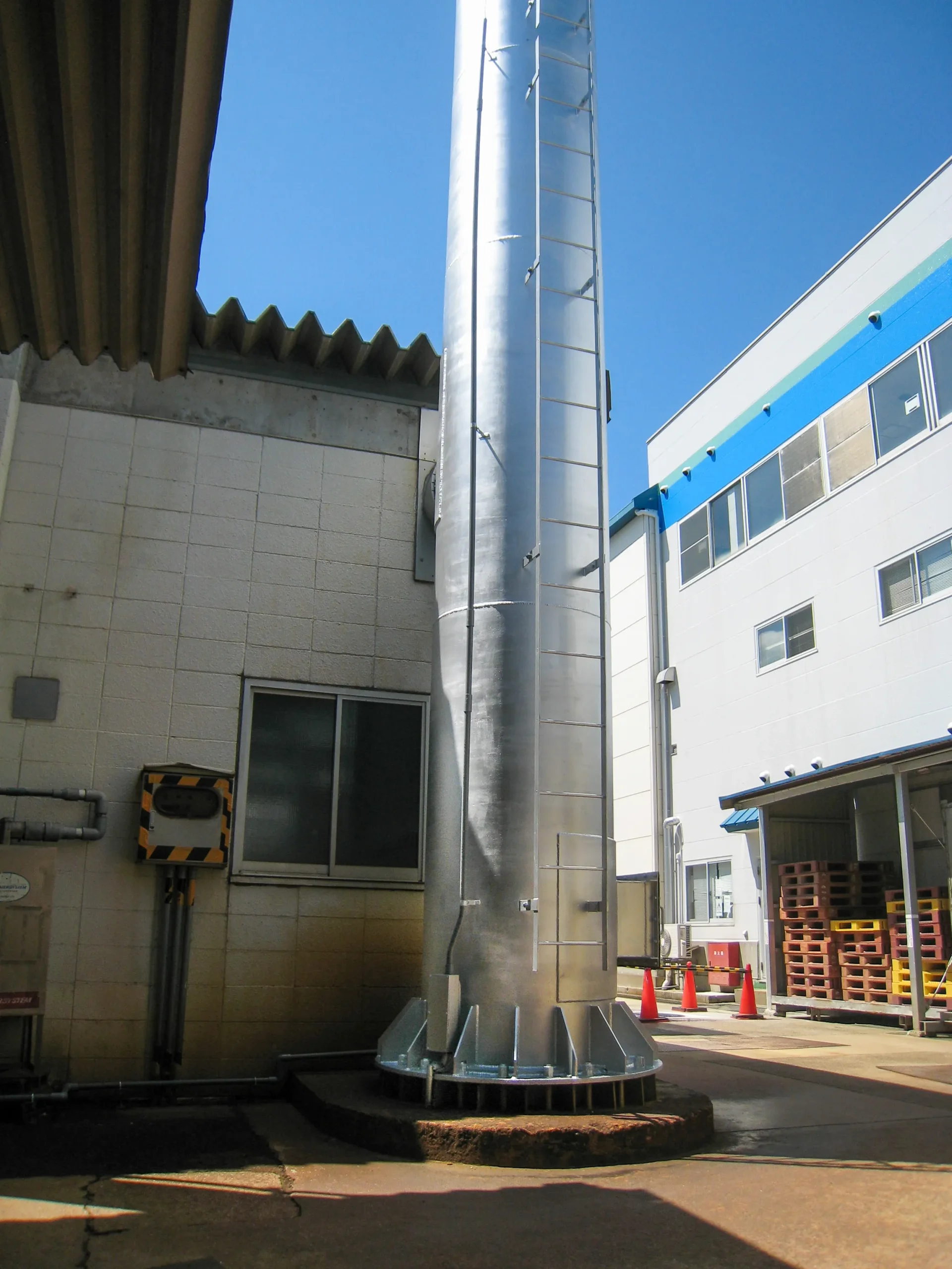 約15mの煙突製作日数(はしご込み)は1週間程度、工事日数は2日です。
