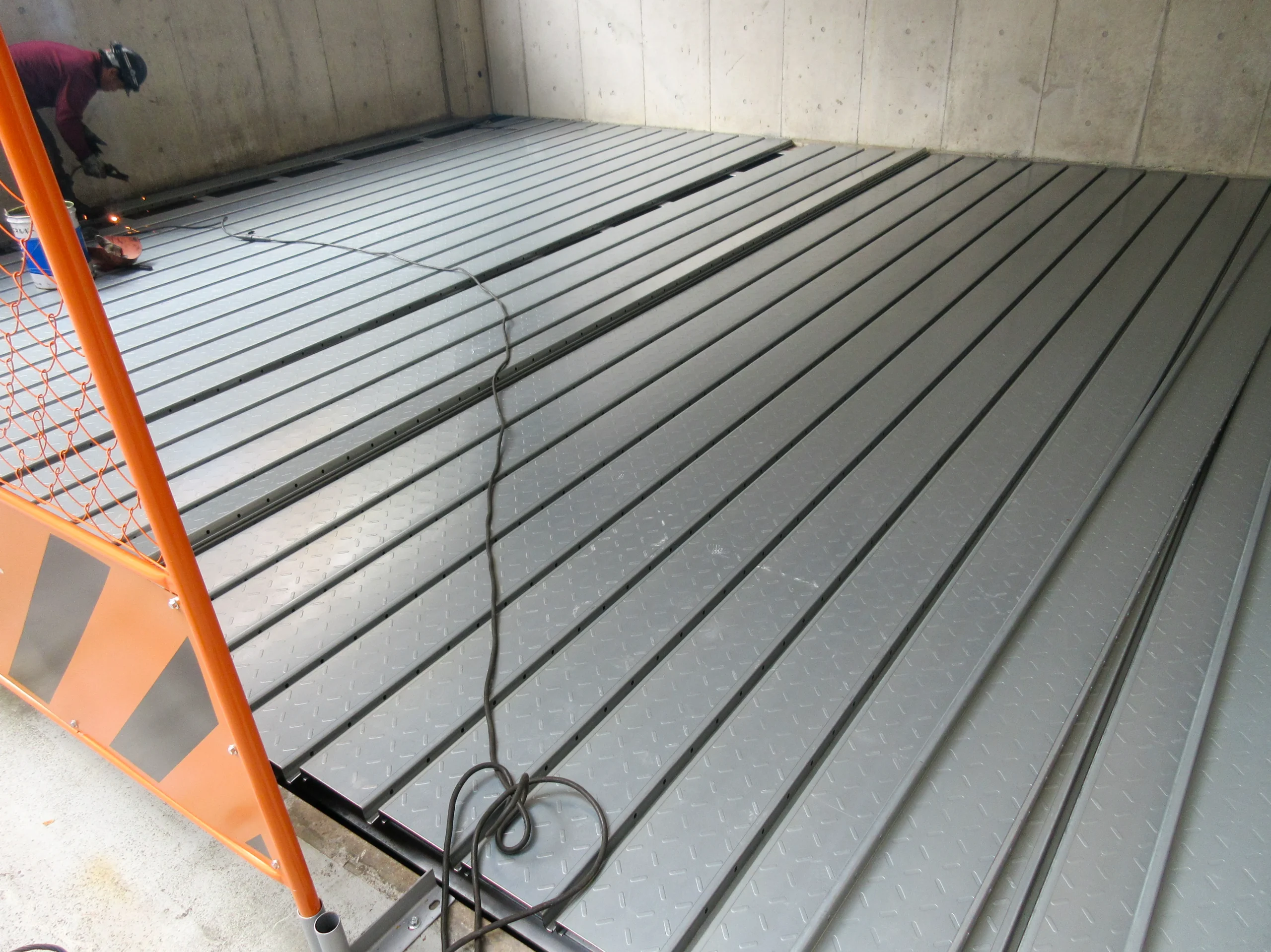 ②床面には防錆性能に優れた高耐久使用の鋼板を採用しました。湿気が溜まりやすいピット特有の環境下でも、長期間腐食を寄せ付けません。